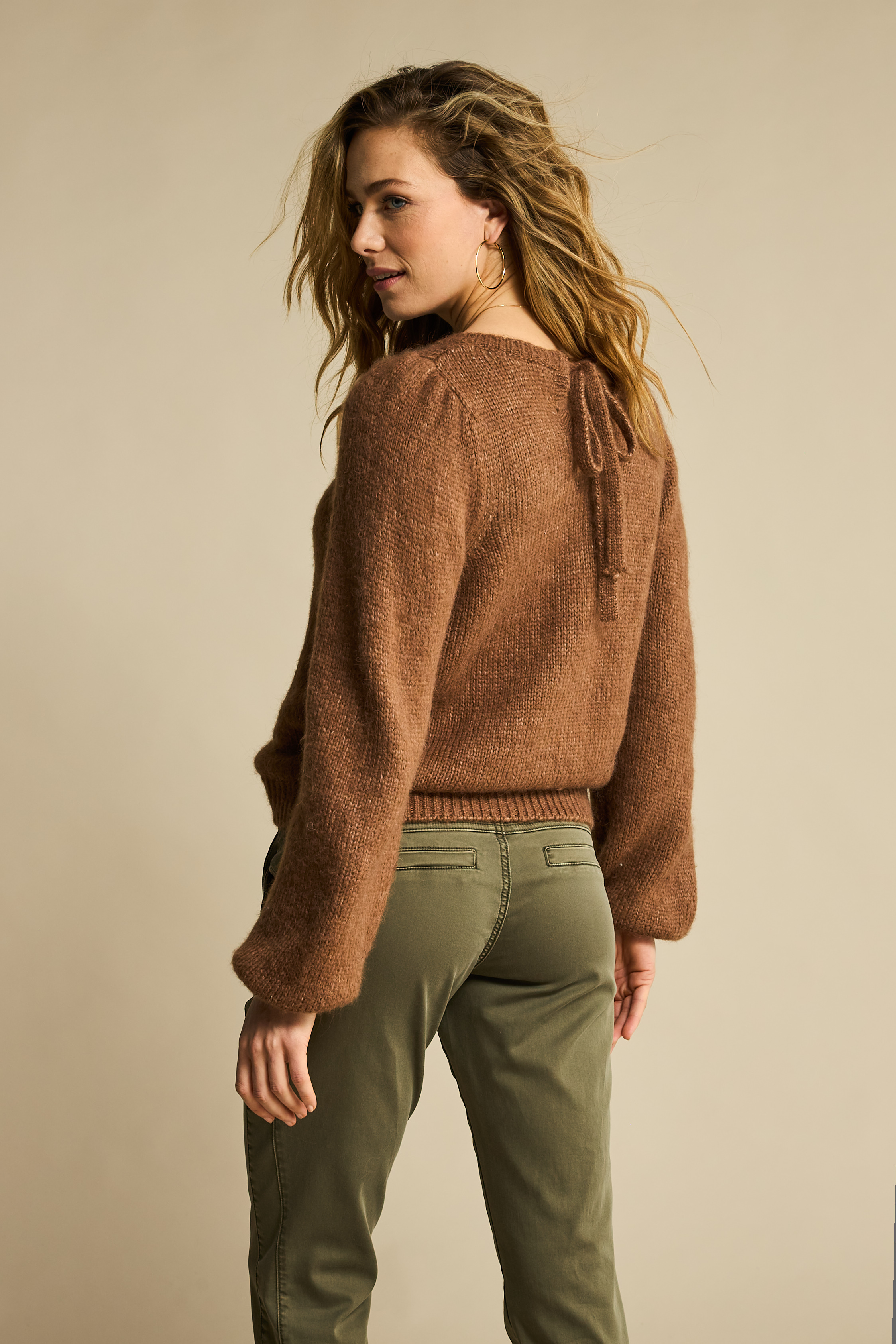 De Sweater with Knot is een trui van een gebreide, zachte kwaliteit. De trui heeft lange mouwen, een ronde hals en een striksluiting aan de achterkant. De Sweater with Knot heeft een subtiele ballonmouw en een geribde boord bij de hals, mouwen en aan de onderkant. Verkrijgbaar in verschillende kleuren.