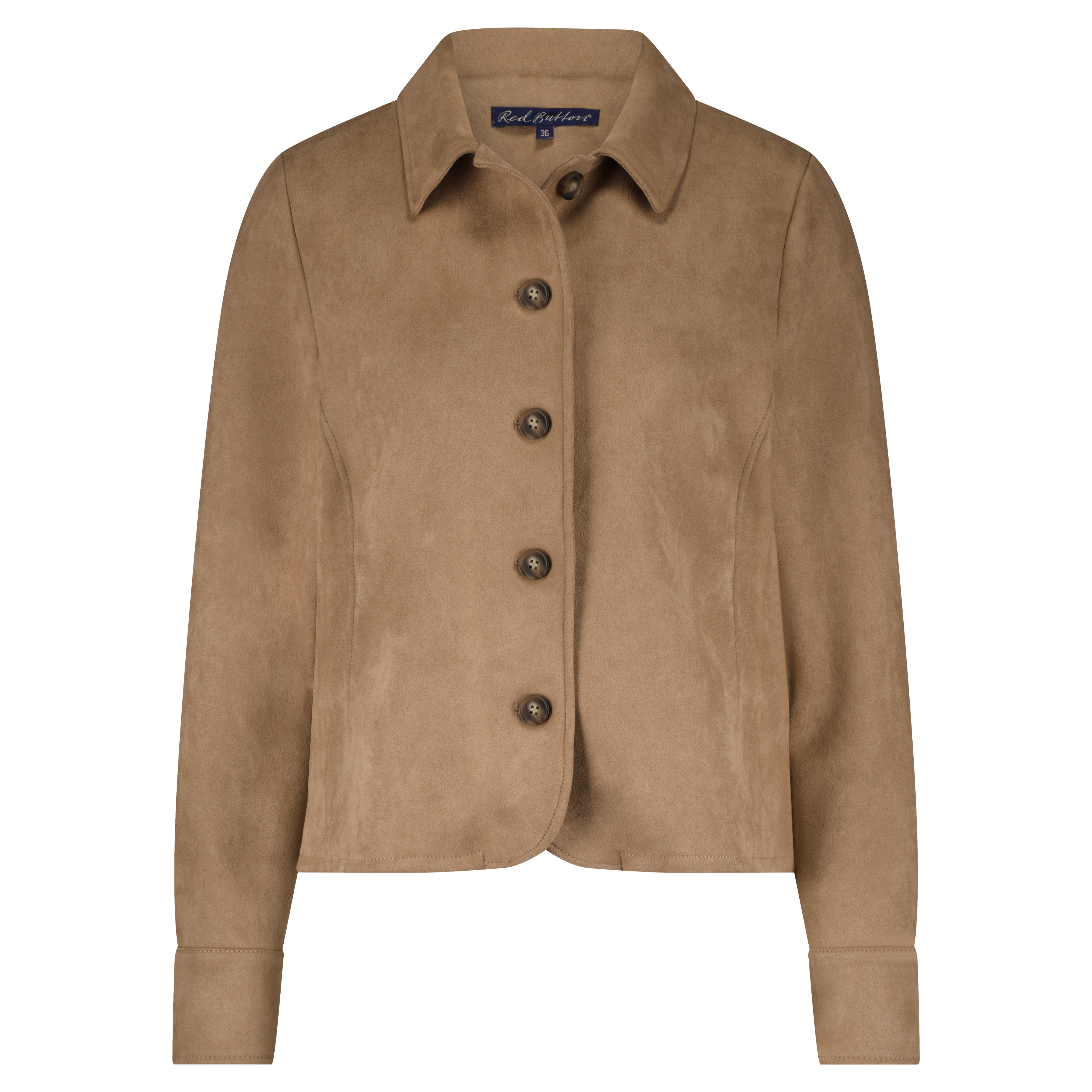 De Jacket Faux Suede heeft een suede look en een regular fit. De jas heeft een knoopsluiting aan de voorkant, dubbele knopen aan het uiteinde van de mouwen en deelnaden voor een flatterende fit. De Jacket Faux Suede kan gecombineerd worden met de bijpassende broek, de Claudette Faux Suede SRB4729, als set.