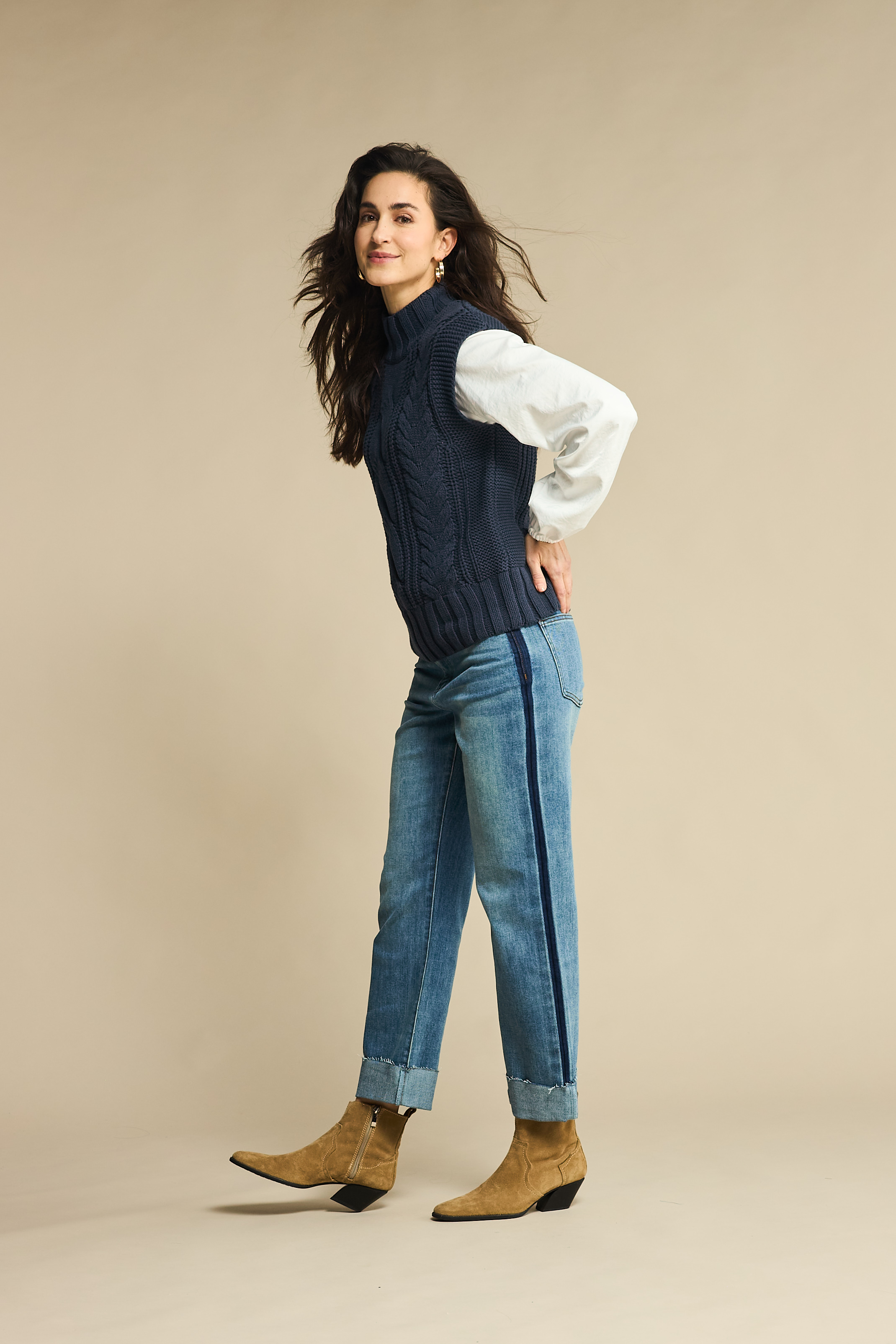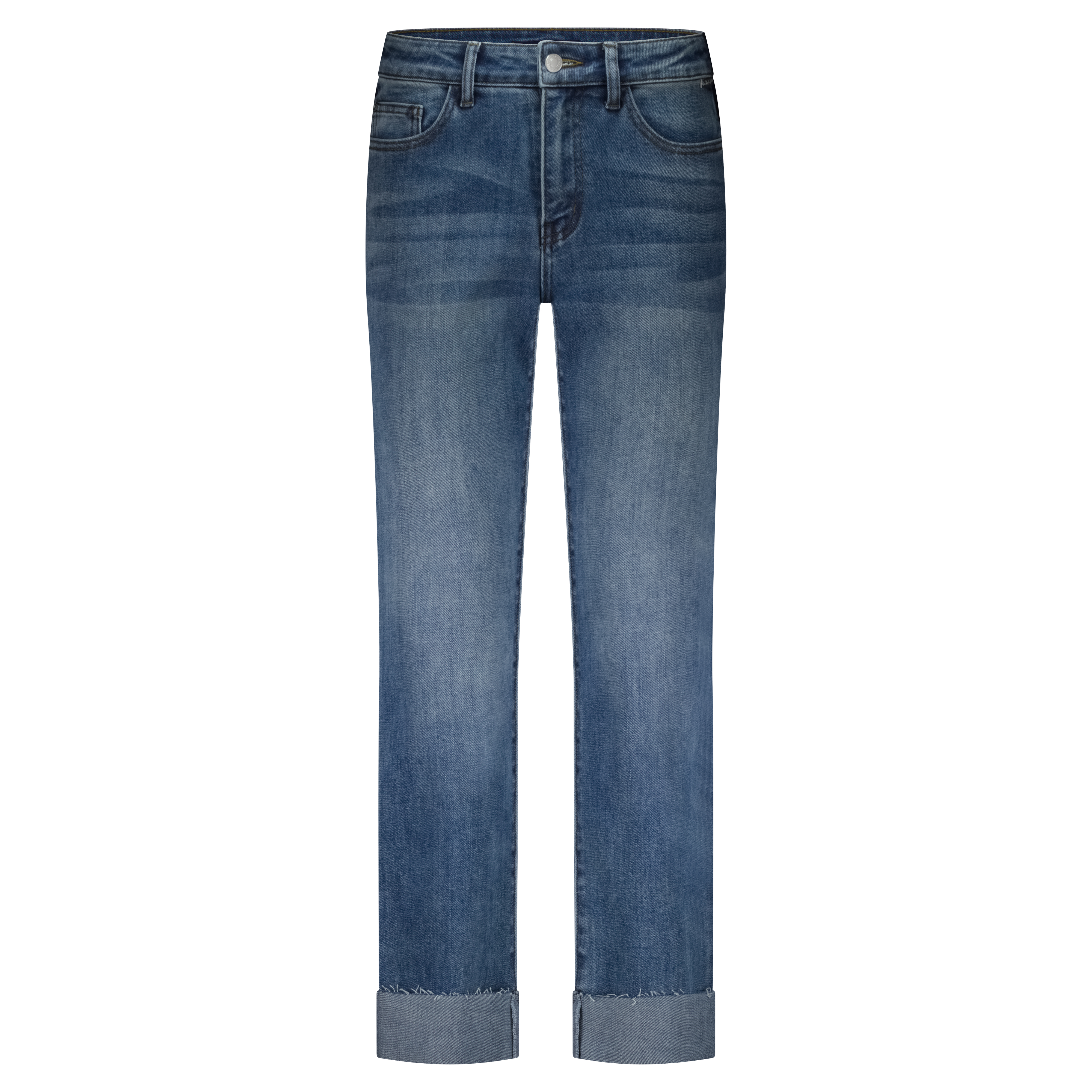 De Kim Stone Used Contrast Sideseam is een straight leg jeans met een contrasterend detail op de zijnaad. De jeans is aansluitend op de heup en heeft rechte pijpen. De Kim Stone Used Contrast Sideseam heeft een blauwe wassing, een hoge taille en een omgeslagen zoom. Deze jeans is gemaakt van stretch denim voor ultiem comfort. Ook verkrijgbaar zonder contrasterend detail.
