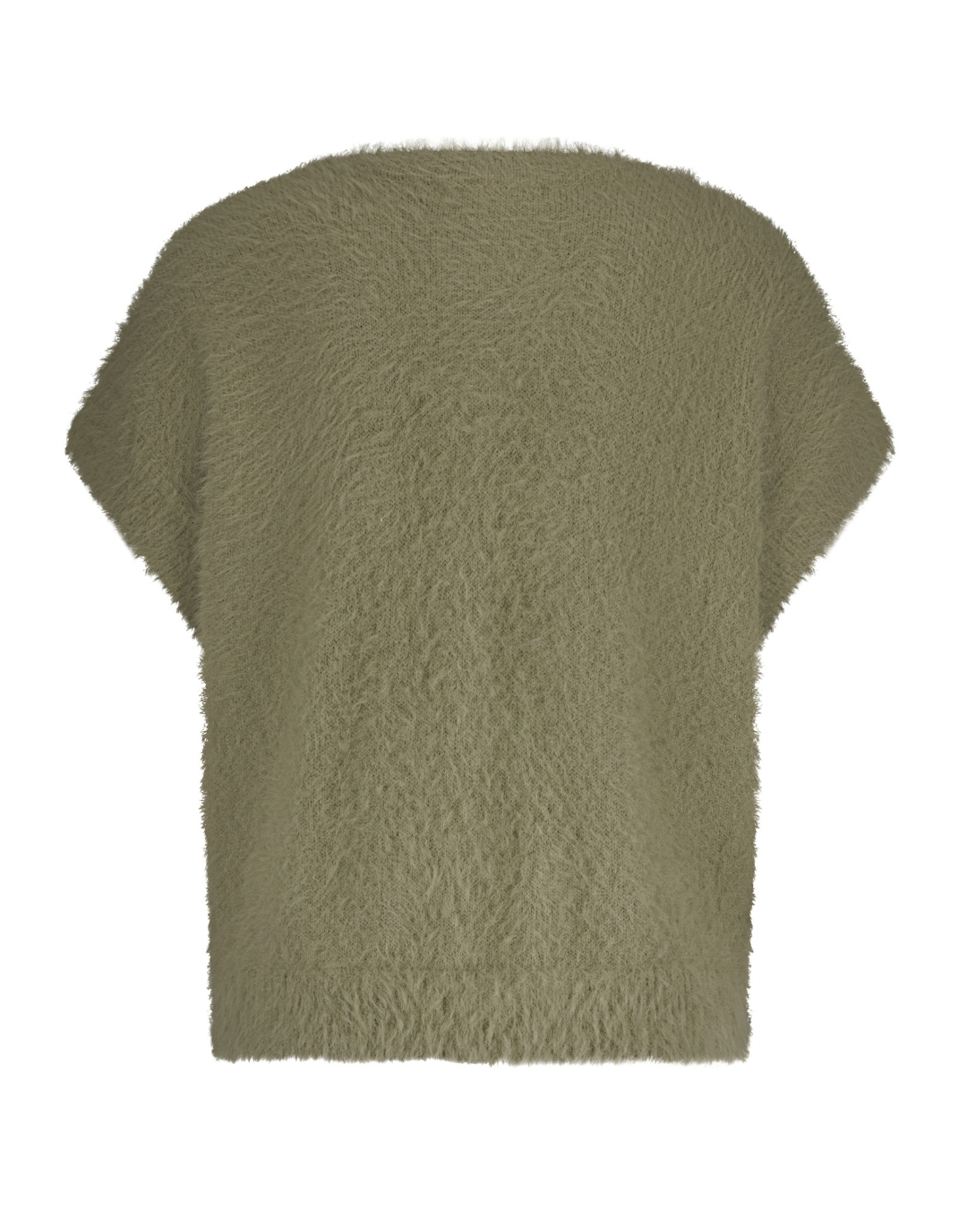 De Sleeveless Fuzzy is een vest gemaakt van een langharig zacht breisel. Het vest heeft korte mouwen, een V-hals en een knoopsluiting aan de voorkant. De Sleeveless Fuzzy is verkrijgbaar in de kleuren almond, lava, espresso, black, olive, ruby & pine.