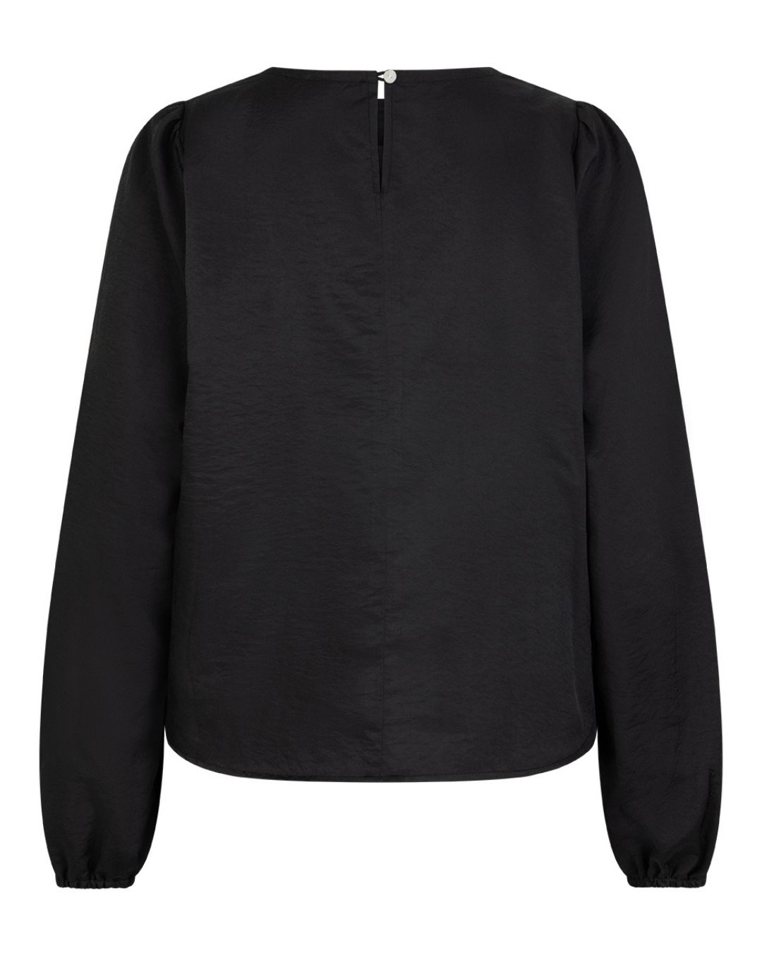 De Esmee Sparkle is een blouse met subtiele pofmouwen. De blouse is gemaakt van een licht glanzende stof en heeft een elastiek aan de onderkant van de mouwen. De Esmee Sparkle heeft een druppelvormige opening met een knoop aan de achterkant en is verkrijgbaar in de kleuren offwhite, latte & black.