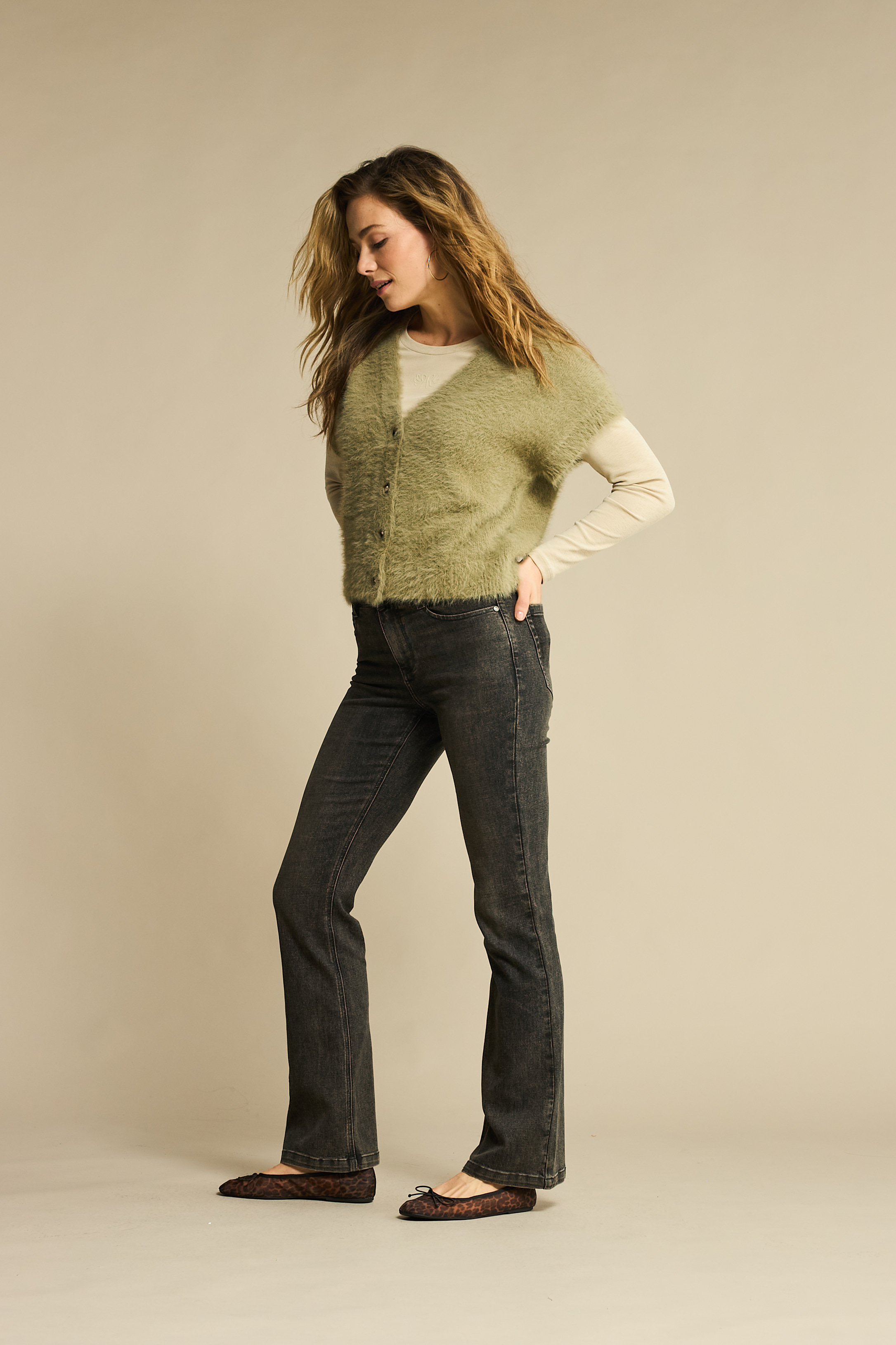 De Bibette Denim Overdye is een flare jeans met een hoge taille en een grijze dirty wassing. De jeans heeft een aangesloten pasvorm op de bovenbeen en heup en is uitlopend vanuit de knie in de perfecte flare. De Bibette Denim Overdye is gemaakt van stretch denim voor ultiem comfort.