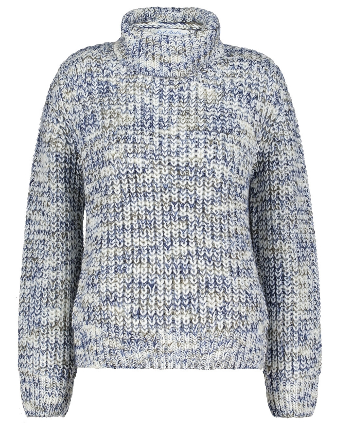 De Cocoon Multi Sweater is een grof gebreide trui met een grote col. Deze trui heeft lange mouwen en een gemêleerd breisel. Verkrijgbaar in de kleuren blue, brown & ruby.