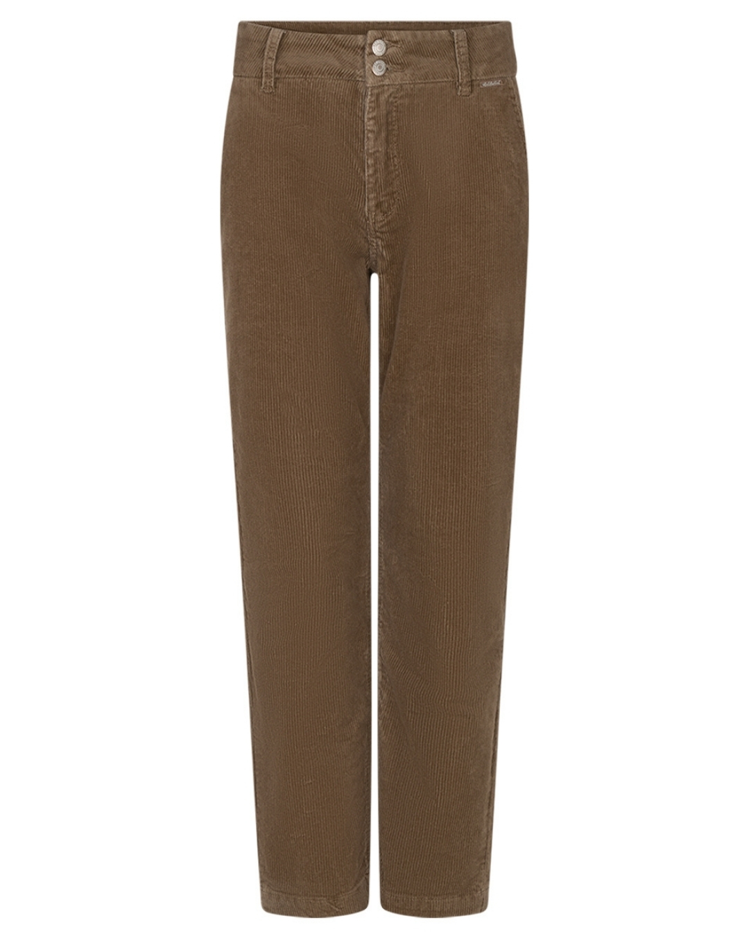 De Diana Cord 10W is een corduroy broek met een regular fit. De broek is aansluitend op de heup en bovenbenen en heeft tapstoelopende pijpen. De Diana Cord 10W heeft een dubbele knoopssluiting, steekzakken en is verkrijgbaar in verschillende kleuren.