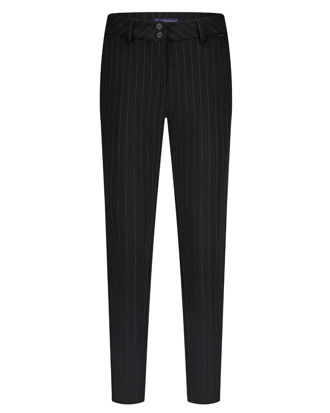 De Diana Punta Pinstripe is een punta broek met een regular fit en een krijtstreep. De broek is aansluitend op de heup en bovenbenen en heeft tapstoelopende pijpen. De Diana Punta Pinstripe heeft een dubbele knoopssluiting, steekzakken en paspelzakken aan de achterkant. Verkrijgbaar in verschillende kleuren.