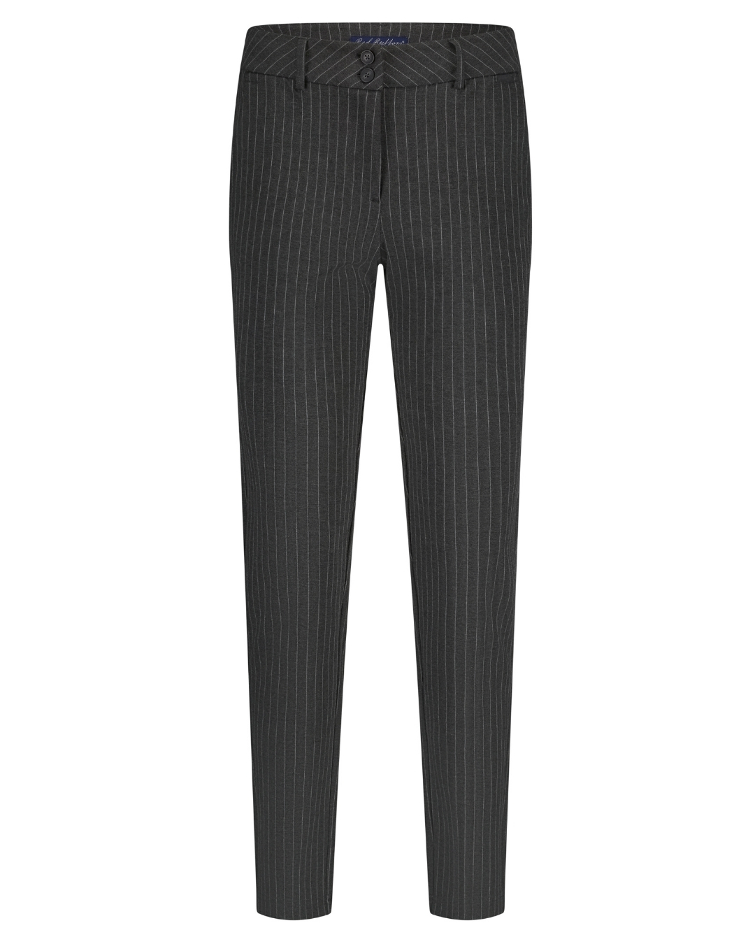 De Diana Punta Pinstripe is een punta broek met een regular fit en een krijtstreep. De broek is aansluitend op de heup en bovenbenen en heeft tapstoelopende pijpen. De Diana Punta Pinstripe heeft een dubbele knoopssluiting, steekzakken en paspelzakken aan de achterkant. Verkrijgbaar in verschillende kleuren.
