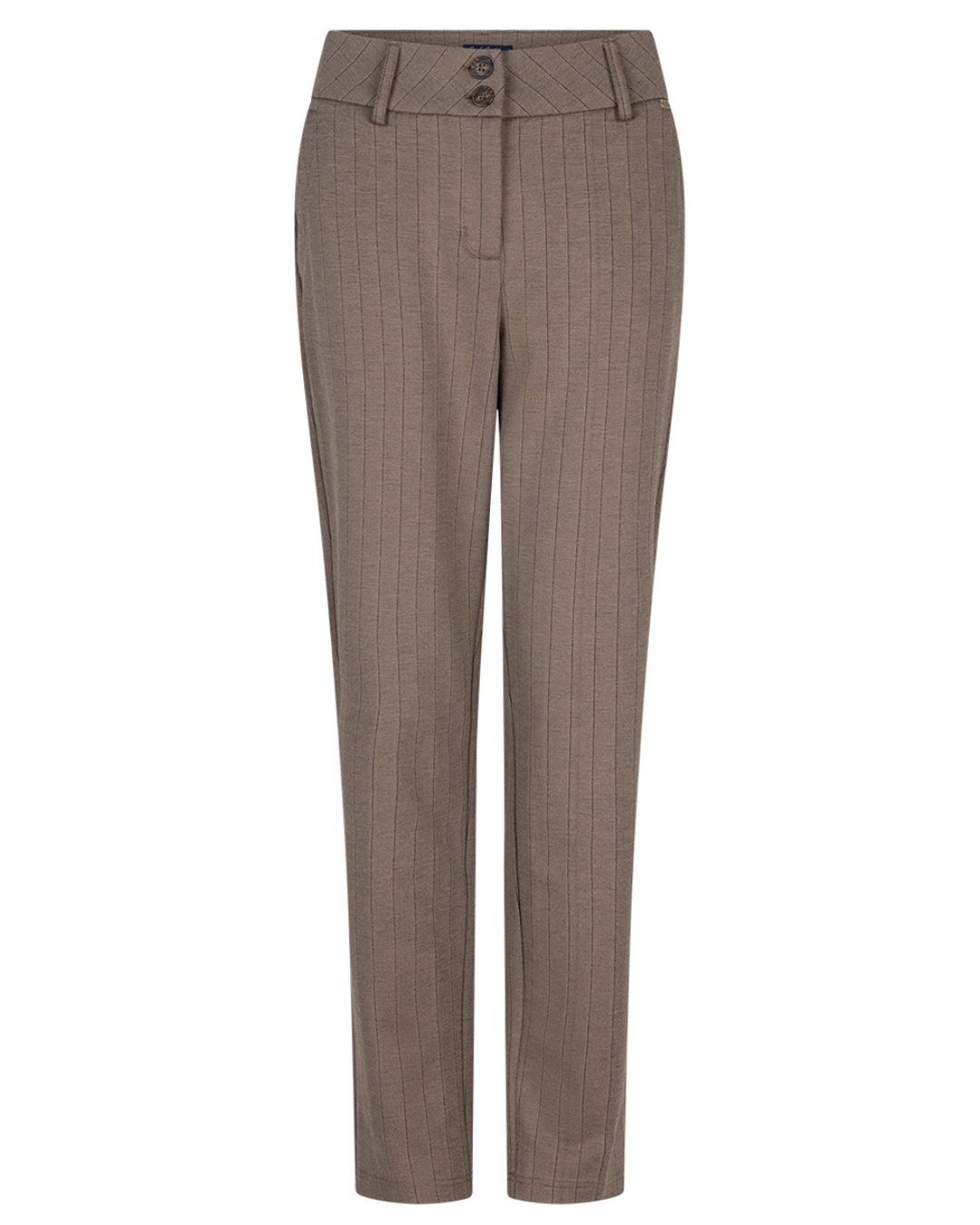 De Diana Punta Pinstripe is een punta broek met een regular fit en een krijtstreep. De broek is aansluitend op de heup en bovenbenen en heeft tapstoelopende pijpen. De Diana Punta Pinstripe heeft een dubbele knoopssluiting, steekzakken en paspelzakken aan de achterkant. Verkrijgbaar in verschillende kleuren.