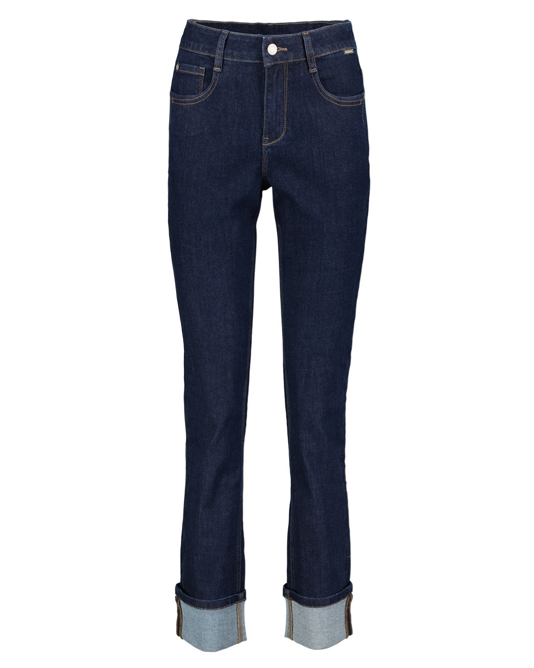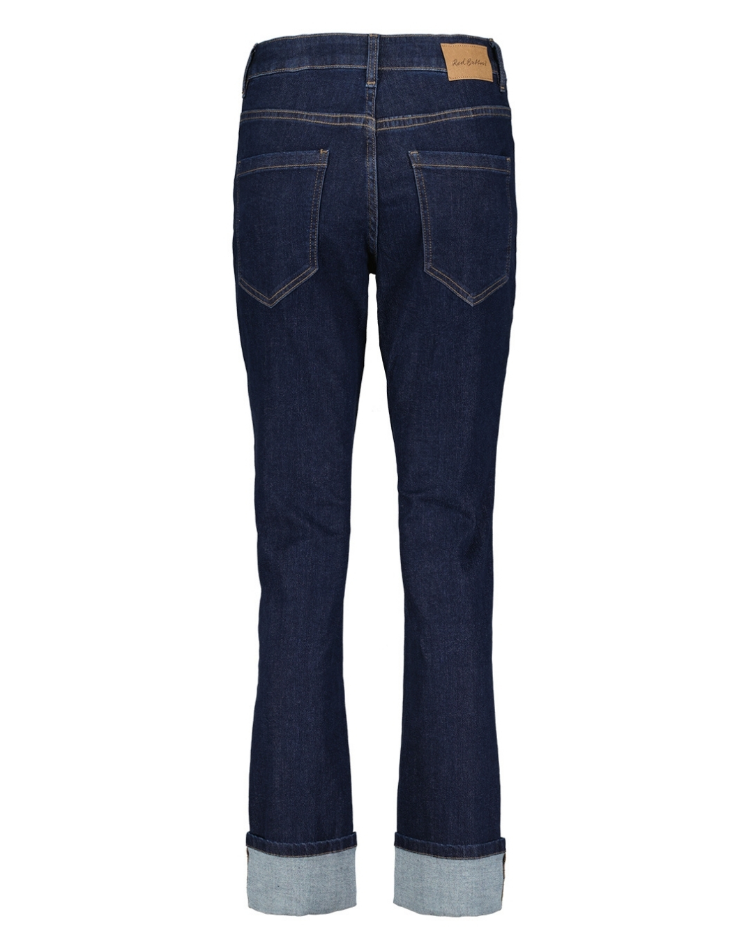 De Kate Dark blue & Turnup is een donkerblauwe straight leg jeans. De jeans heeft een gemiddelde taille hoogte een omslag bij de pijp. De Kate Dark blue & Turnup heeft 5 zakken en is gemaakt van stretch denim voor ultiem comfort.