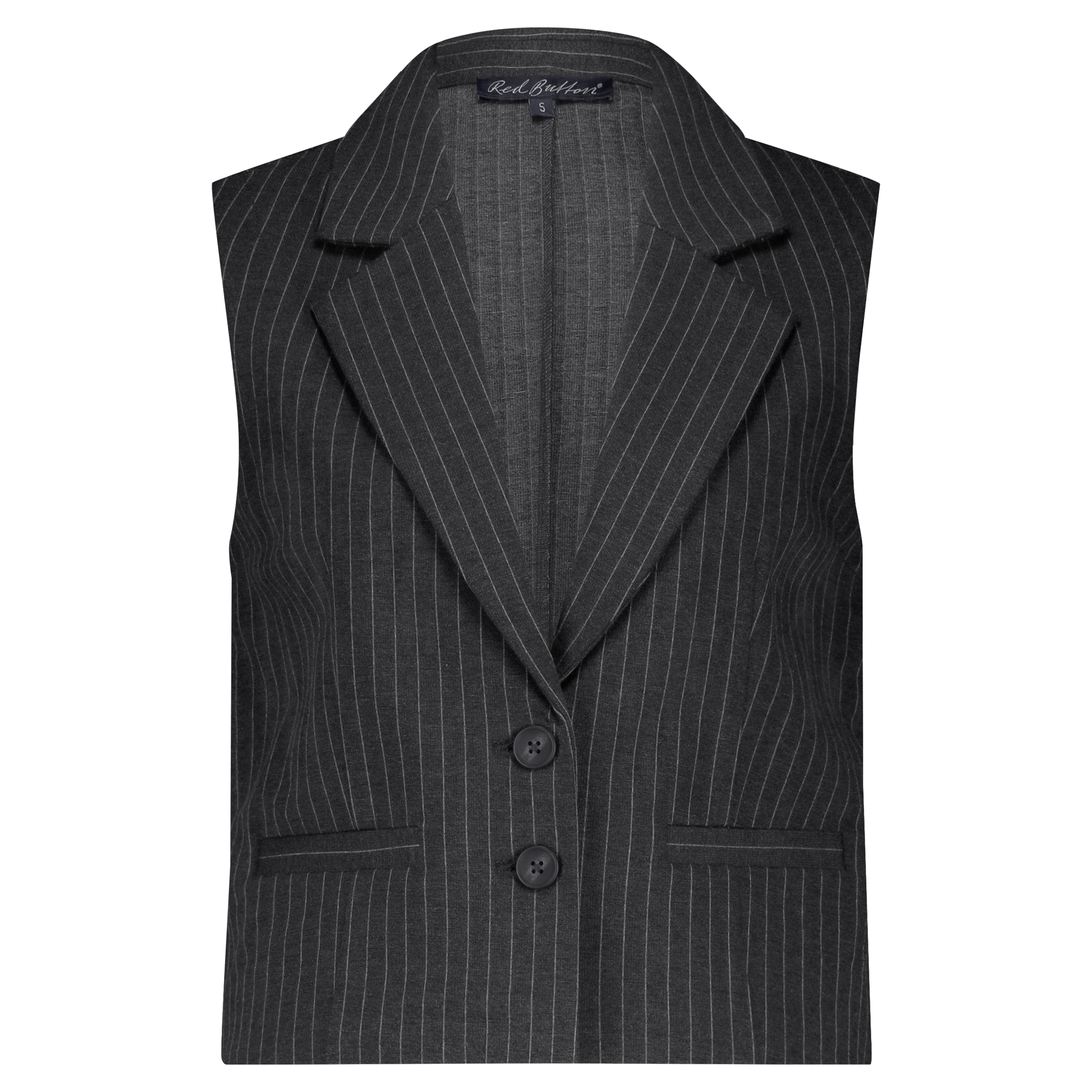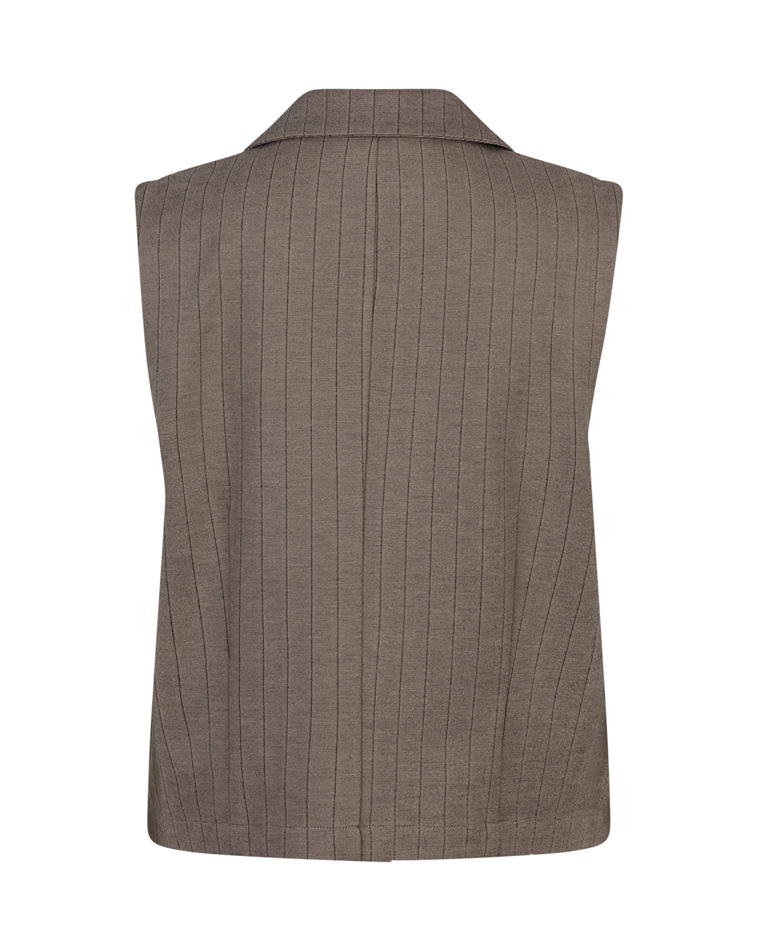 Waistcoat met een krijtstreep. De waistcoat heeft een knoopsluiting aan de voorkant en een reverskraag. Beschikbaar in de kleuren black, grey melange & warm taupe.